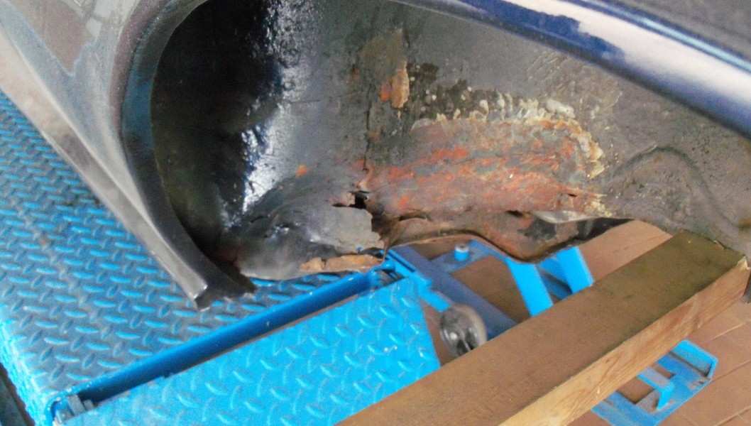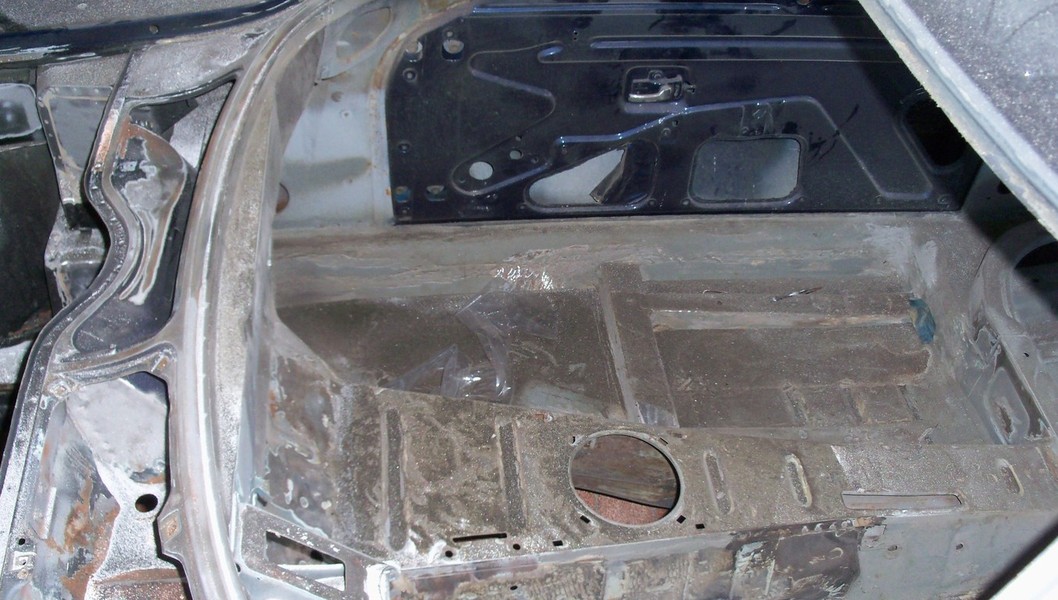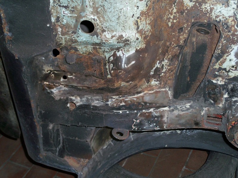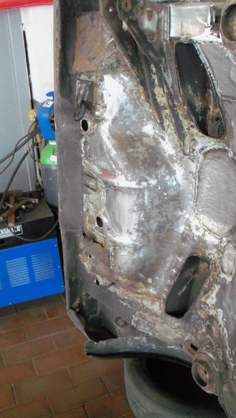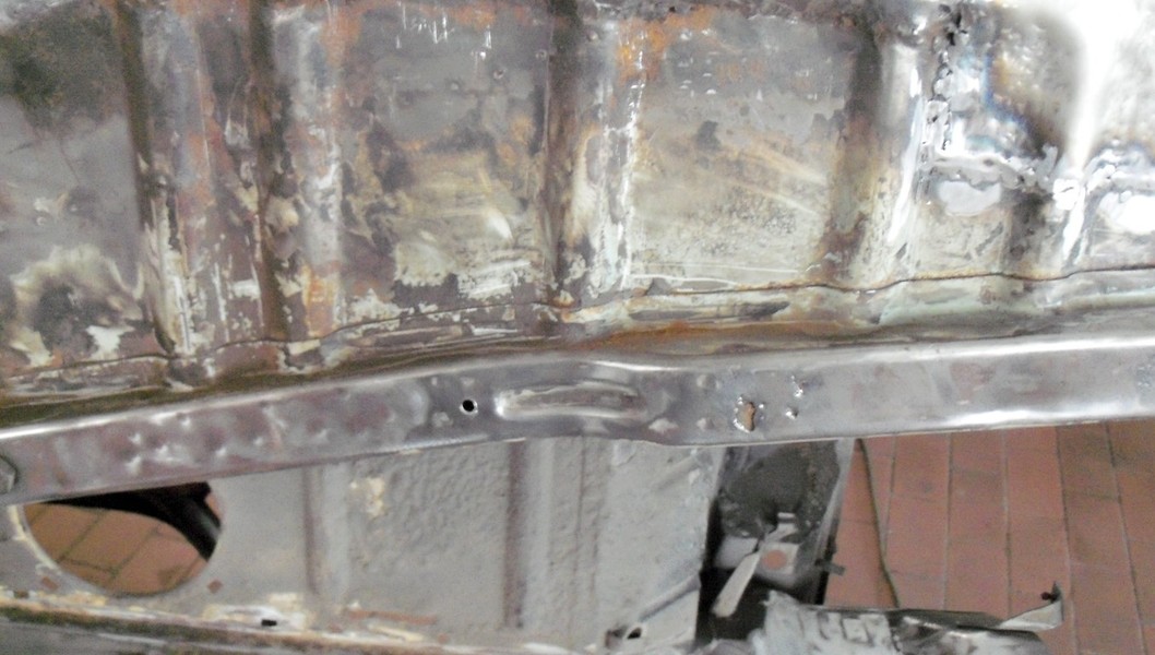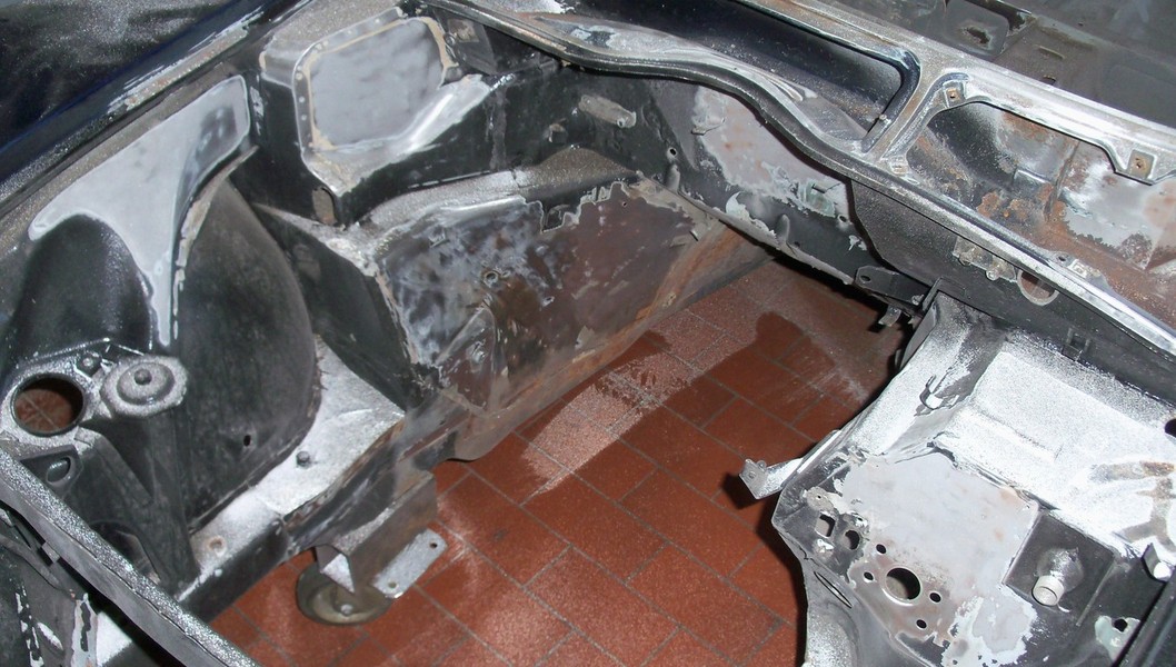 Sobald das Wetter besser wird kommt die Karosse komplett entkernt zum Sandstrahler um das genaue Ausmass feststellen zu können.