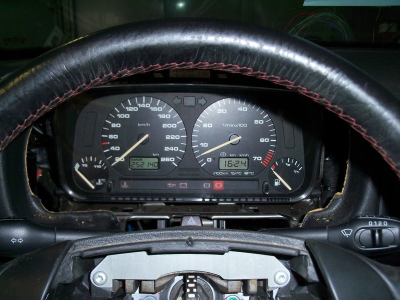 Schlüssel rum und siehe da er läuft,besser als gedacht,alle Instrumente im grünen Bereich,jetzt kann der Kabelsalat sauber an seinen Endplatz verlegt werden und das Fahrzeug vorne rum wieder komplettiert werden.